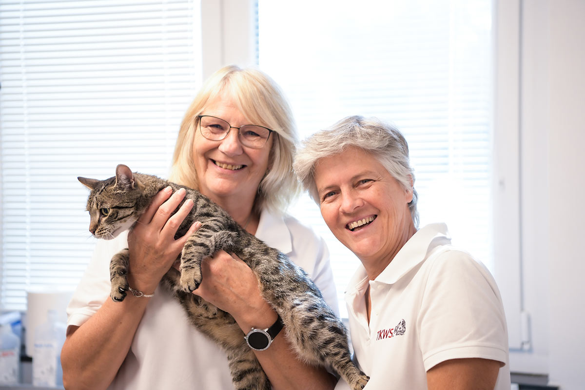 von links nach rechts: Assistentin Tamara Tromayer, Dipl. Tierärztin Xochil Hofbauer, Assistentin Karin Enge, Tierärztin Dr. med. vet. Silvia Weis, Assistentin Veronika Bendl, Tierarzt Vet. Rat Dr. med. vet. Wolfgang Weis, Verhaltensbiologin Mag. Sabine Nikodemus